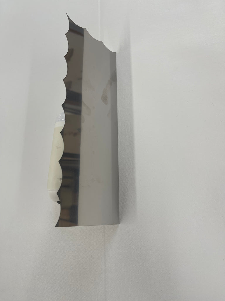 0.5mm Revolutionary trowel to create Flute-out wall finish without custom made tool. Will work with any type of plaster. Wide blade with handle. Stainless steel trowel proudly crafted in Italy by CO.ME.
