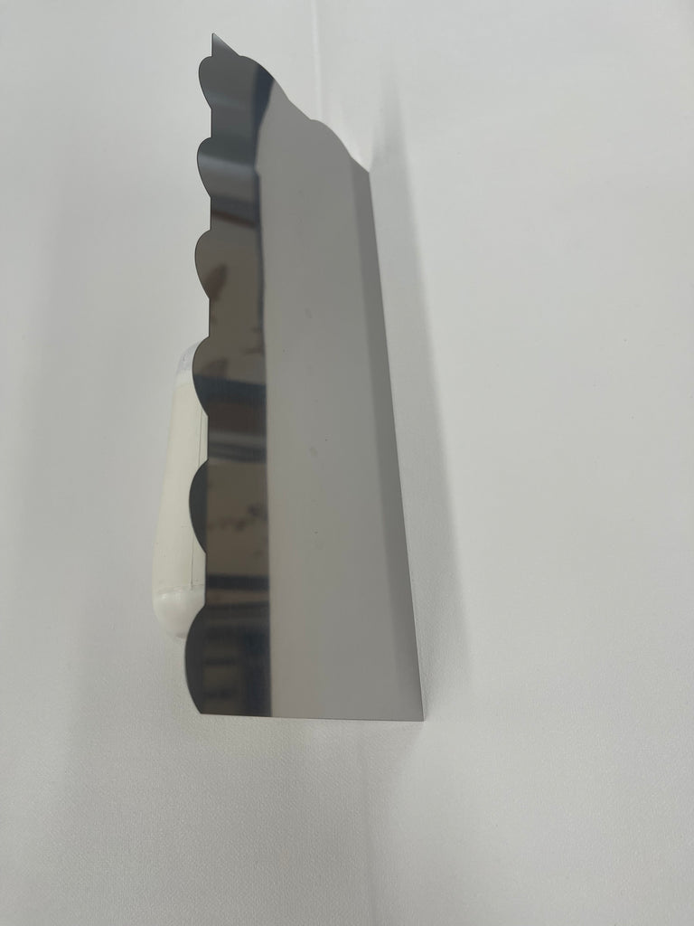 0.5mm Revolutionary trowel to create Flute-out wall finish without custom made tool. Will work with any type of plaster. Wide blade with handle. Stainless steel trowel proudly crafted in Italy by CO.ME.